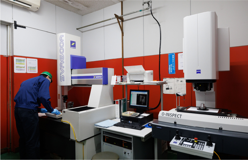 ミツトヨ製三次元測定機、東京精密製マルチセンサ測定機、表面アラサ測定機、投影機、実態顕微鏡、万能測定機を各工場に精密測定室完備しており、上場企業様より無検査認定工場・品質優良工場などの認定を受けております。製品の高度化のニーズにお答えすべく、確実・安心の製品をお届けいたします。