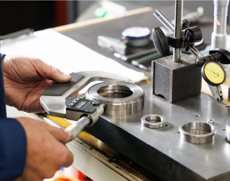 最先端マシニングセンター・大物加工機(五面加工機・門型・横中ぐり盤・立型)などの工作機械を使い、産業用部品・少量多品種・高難易度・高精密に挑戦。スピード・精度・パターを追求した高性能機(高速マシニングセンター)やNC旋盤・ワイヤー放電加工機、成形・平面・円筒研削盤、精密測定室を完備し、モノ作りにこだわり、お客様のニーズにお答えします。アルミ・鉄・ステン・非鉄材等及び特殊材の精密加工、材料手配、機械設計、メッキ、 塗装、溶接、製缶、板金、熱処理、組立等一括受注もぜひご相談ください。