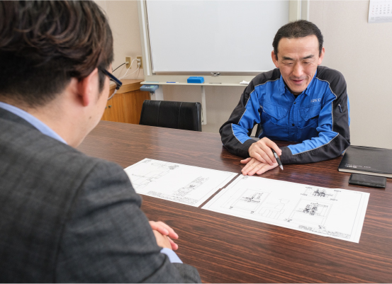 お客様の要望を具現化するために、図面の細部までを確認し、設計作業を進めます。